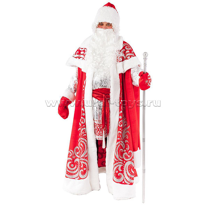 Цена указана за 1 шт. • Красная шуба с вставками из белого плюша и серебристым узором.