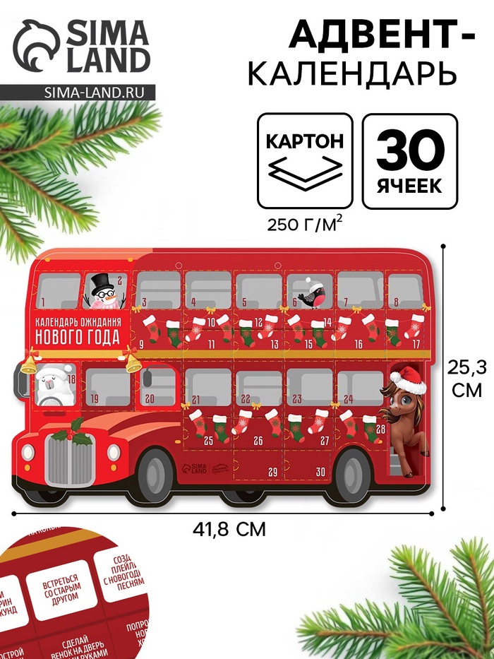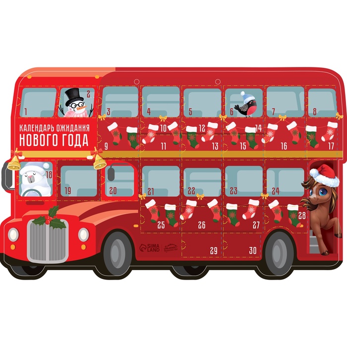 Адвент календарь новогодний «Автобус» 41.8×25.3 см