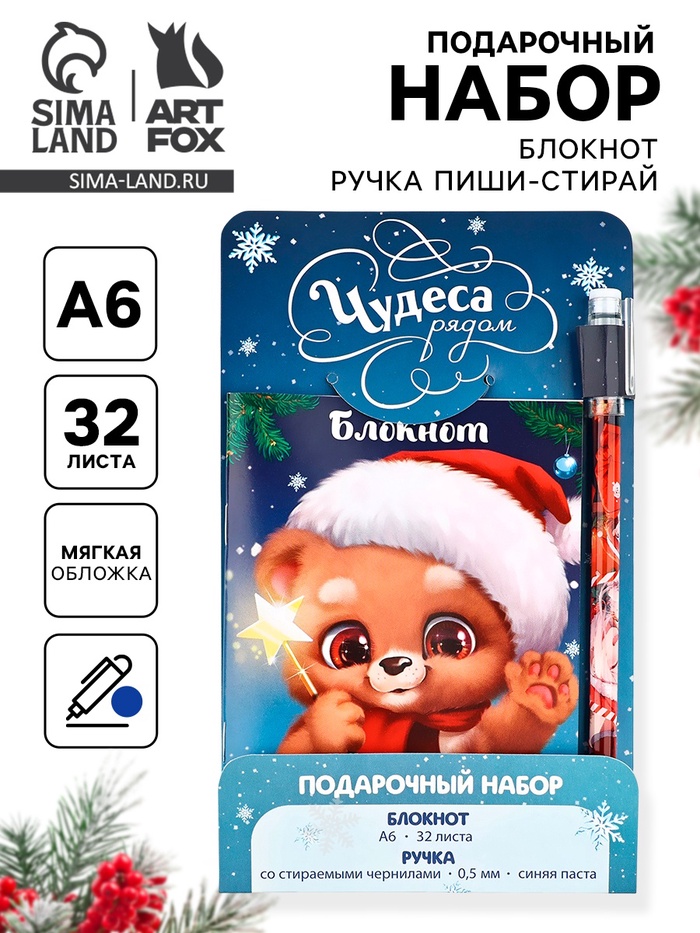 Подарочный набор новогодний, блокнот и ручка пиши-стирай «Чудеса рядом»