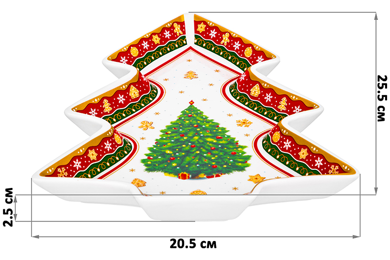 Блюдо 20,5*25,5*2,5 см "Новогодняя елка" красный узор NEW BONE CHINA