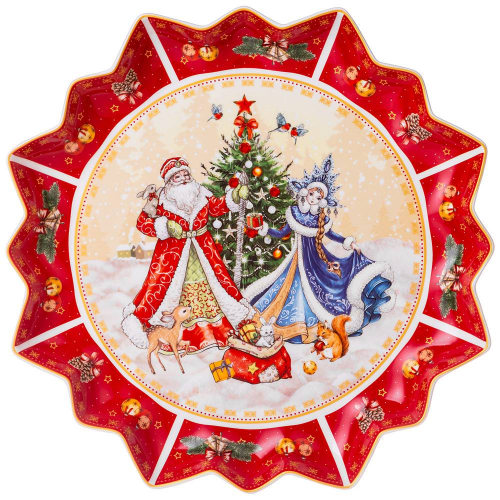ТМ LEFARD New Year Collection готовы украсить праздничный новогодний стол и радовать всех в самые ожидаемые дни в году. С 1699 года указам Петра Первого Новый год празднуется в ночь на 1 января каждого года (по юлианскому календарю). Символом праздника стал дедушка с белой бородой, имя которого - Дед Мороз, и его помощница - девочка из снега по имени Снегурочка. Изделия с любимыми персонажами и нарядной новогодней Елкой выполнены на тонкостенном высококачественном фарфоре. Посуда упакована в яркие коробки. Это прекрасный подарок. Продукция прошла сертификацию, безопасна для контакта с пищевыми продуктами. Можно использовать в СВЧ, не рекомендуется мыть в посудомоечных машинах во избежание повреждения золотой отводки (деколи) на изделиях.