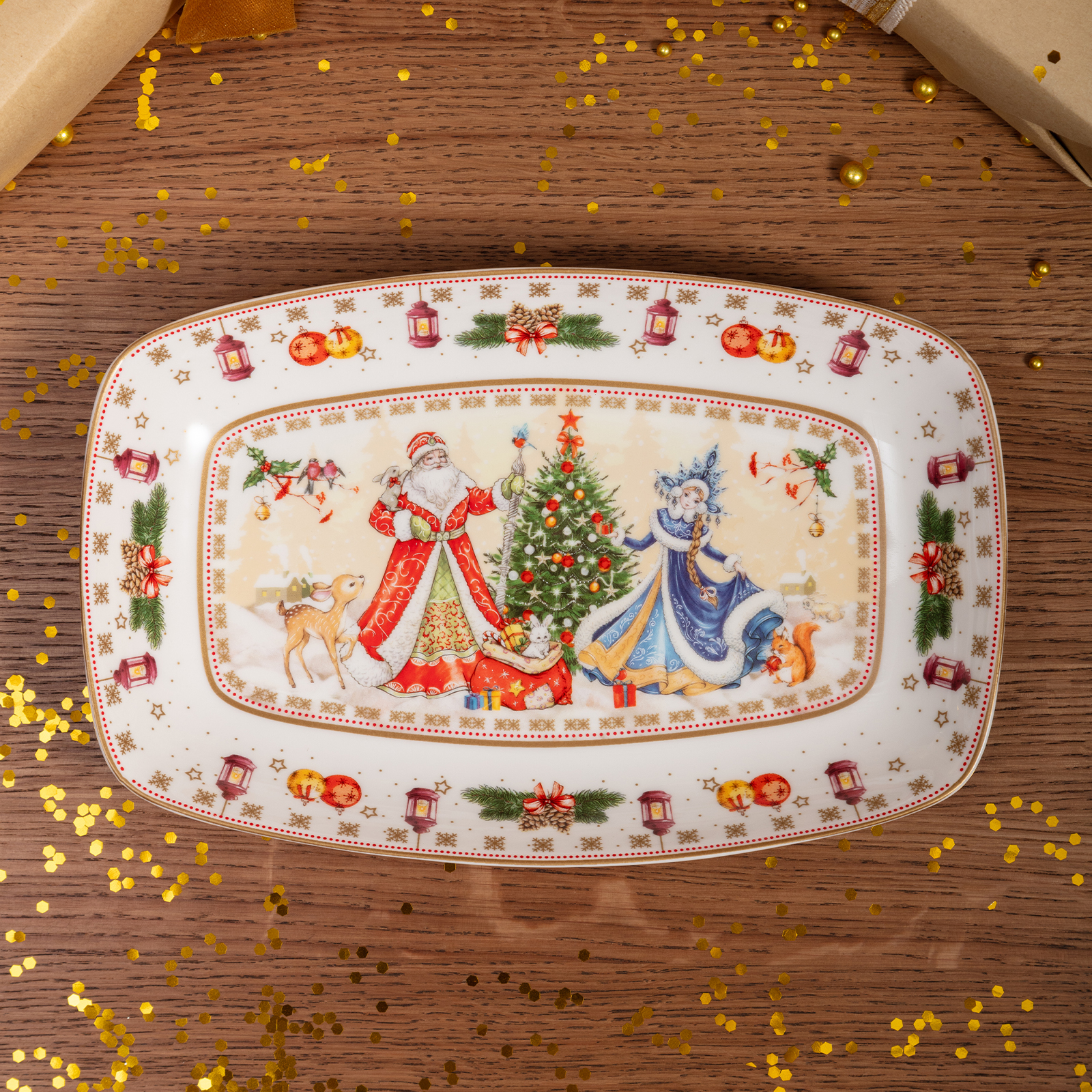 БЛЮДО LEFARD "ДЕД МОРОЗ И СНЕГУРОЧКА" ПРЯМОУГ. 25*16*3 СМ (КОР=12ШТ.)