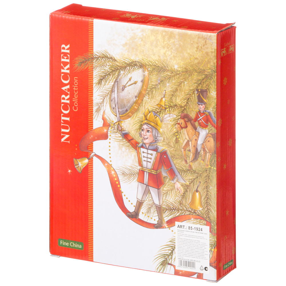 ТМ LEFARD эксклюзивная коллекция «Nutcracker» - Щелкунчик создана по мотивам одноименной истории, с которой знакомы все дети и взрослые. Волшебная история о новогоднем чуде идеально подходит для создания праздничного настроения. Широкий ассортимент тарелок, салатников, кружек, чайных пар поможет сервировать праздничный стол и создать сказочную атмосферу. Все изделия выполнены из качественного тонкого фарфора. Прямые современные формы, удобные объемы. Стильная, подарочная упаковка. Дарите сказку друзьям и близким людям! Можно использовать в СВЧ, не рекомендуется мыть в посудомоечных машинах во избежание повреждения золотой отводки (деколи) на изделиях.