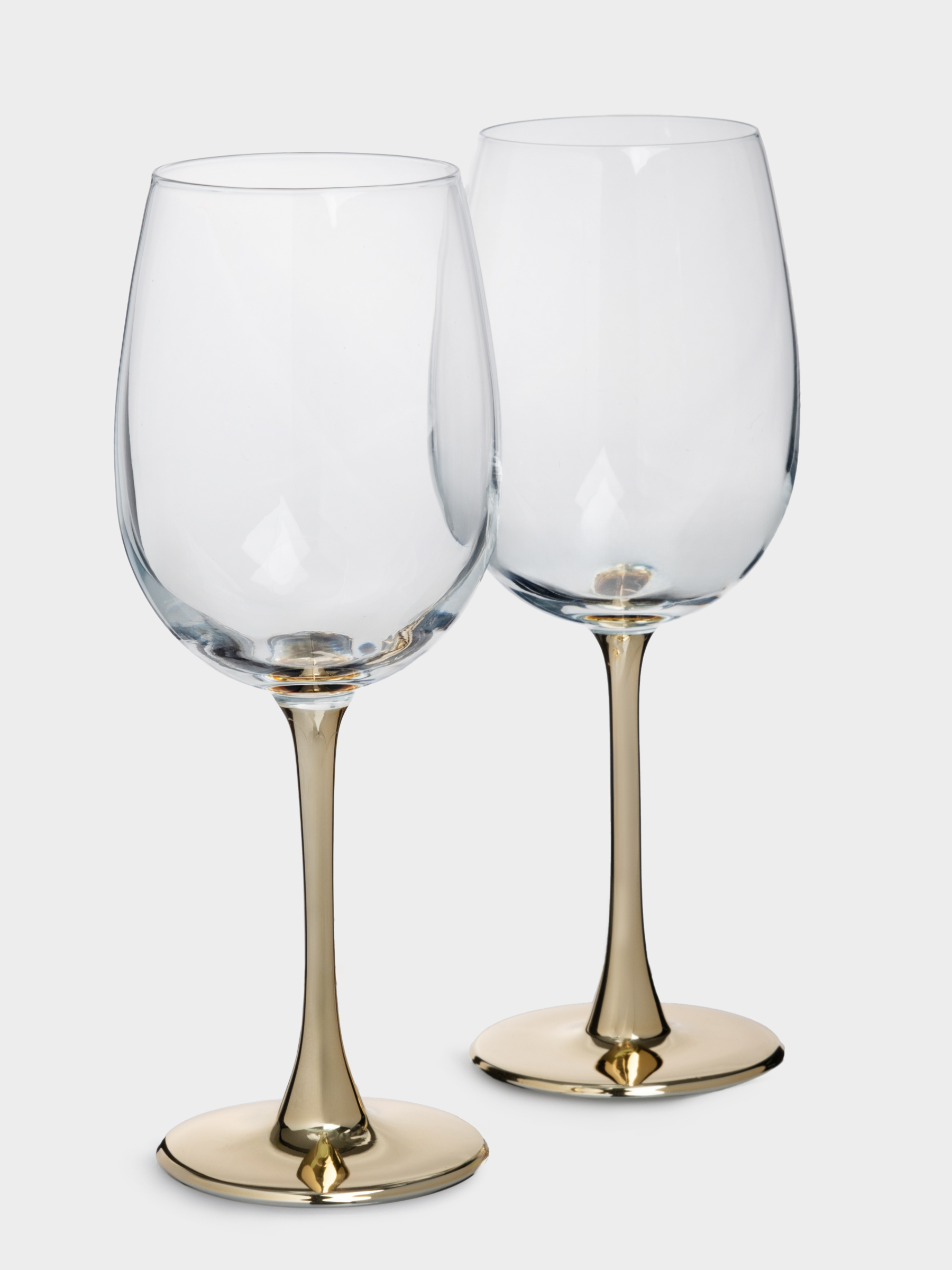 Бокал для белого вина, 430 мл, 2 шт, стекло, золотистая ножка, Ravello