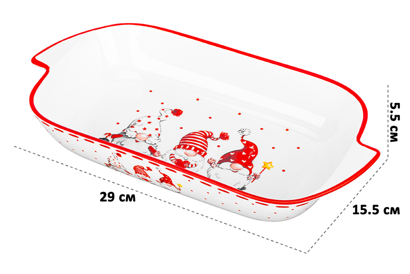 Шубница из серии «Весёлые гномики» от Elan Gallery предназначена для эстетичной сервировки вашего стола. Размер изделия – 29х15,5х5,5 см, объём – 1 литр. Выполнена из высококачественного белого фарфора. Он не впитывает цвет продуктов и легко отмывается, благодаря чему надолго сохраняет свою белизну. Поверхность изделия украшает яркий рисунок в виде забавных гномиков. Вместительная ёмкость подойдёт для селёдки под шубой, холодца и плова. Предназначена как для подачи, так и для запекания ваших любимых блюд в духовке. Глубокое блюдо позволит вам эстетично преподнести угощения из рыбы и мяса. Порадуйте себя большой порцией шашлыка или лапши, разложите суши и роллы, бутерброды и фруктовую нарезку. Выложите нарезанные яйца, сыр и другие закуски, чтобы за большим столом каждому досталось любимое угощение. Заполните большую ёмкость разнообразной выпечкой и сладостями: вафлями, мармеладом, пряниками, шоколадом и печеньем, – дополните семейное чаепитие. Создайте композицию из конфет, ягод, кексов и сухофруктов, чтобы удивить гостей своей кулинарной фантазией. Фарфоровая посуда с изображением маленьких новогодних помощников привнесёт в любое помещение дух волшебства и праздника! Это оригинальный элемент вашего декора. Не рекомендуется применять абразивные моющие средства. Подходит для использования в посудомоечной машине, микроволновой печи и духовом шкафу при температуре до 230 градусов. Поставляется в дизайнерской картонной коробке – благодаря ей вам не потребуется дополнительная подарочная упаковка. Изделие станет прекрасным сувениром на память и отличным подарком для друзей и близких. Серия «Весёлые гномики» от бренда Элан Галерея поможет вам погрузиться в атмосферу Нового года и Рождества и наполнит ваш дом зимним уютом!