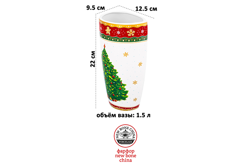 БЫЛО 1506 руб! Ваза 1,5 л 12,5*9,5*22 см "Новогодняя елка" NEW BONE CHINA