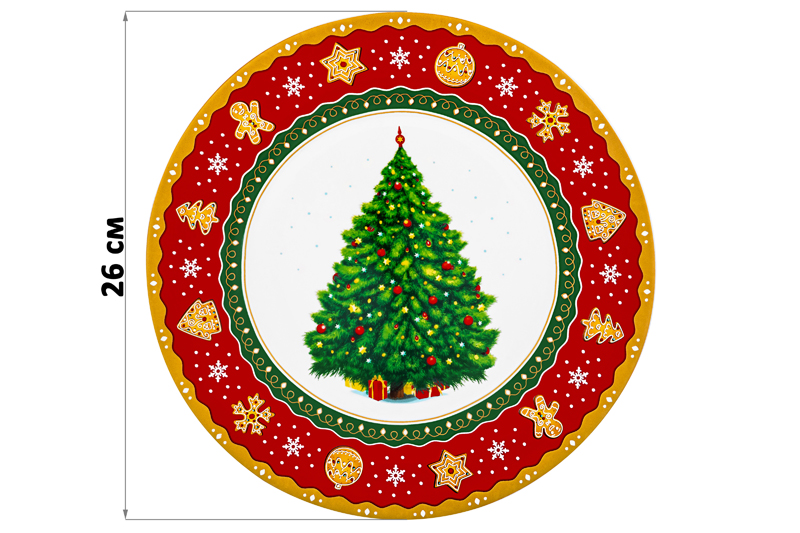 БЫЛО 1576 руб! Набор тарелок 2 пр. 26*26*2 см "Новогодняя елка" зеленый + красный узор, фарфор NEW BONE CHINA
