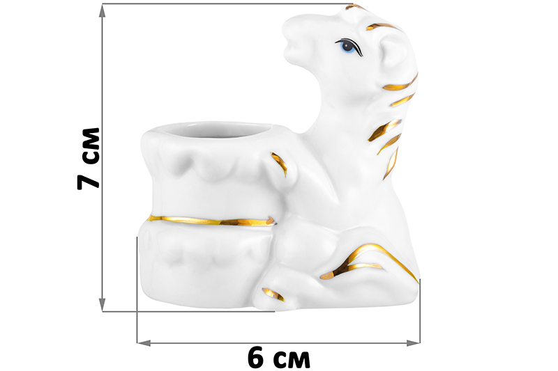 БЫЛО 349 руб! Вазочка для зубочисток 6*4*7 см "Лошадь" белая с золотом, фарфор