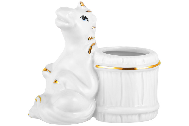 БЫЛО 349 руб! Вазочка для зубочисток 7,5*4,5*7 см "Лошадь" белая с золотом, фарфор