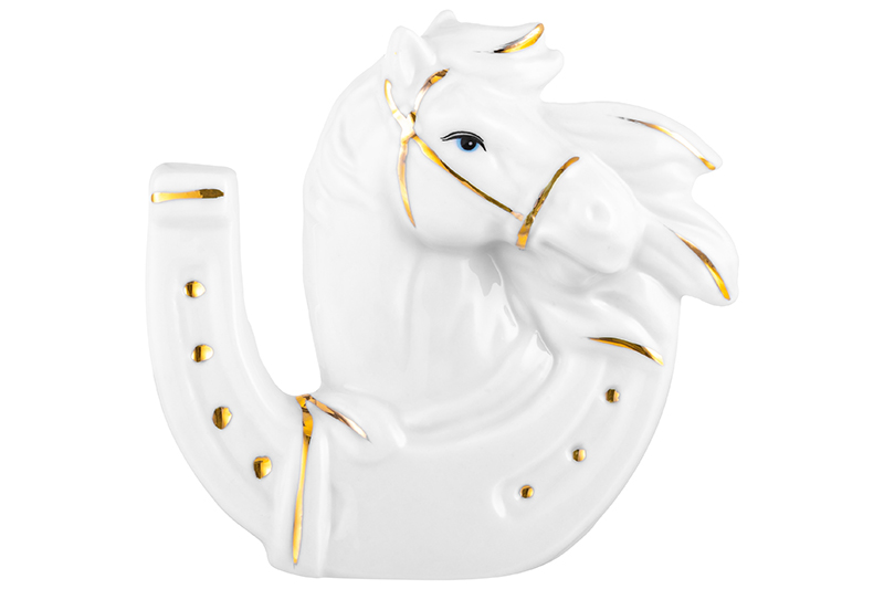 БЫЛО 388 руб! Фигурка декоративная 9*3*8,5 см "Лошадь и подкова" белая с золотом, фарфор