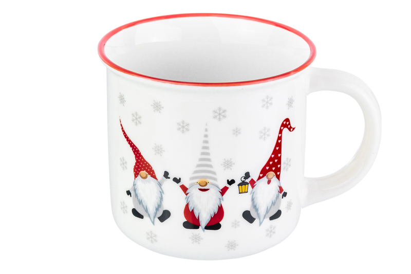 Кружка Elan Gallery "Весёлое семейство гномиков" объёмом 400 мл выполнена из фарфора нового поколения new bone china. Благодаря современным технологиям он не уступает другим видам фарфора в прочности, но при этом экологичнее в производстве. Кружечка украшена ярким изображением гномов в новогодних колпачках. Кружка с принтом подходит ценителям чая и кофе, которые любят пить из красивой и необычной посуды. Отлично подойдёт как для женщин, так и для мужчин. Это идеальный вариант для того, чтобы согреться горячим напитком зимой и освежиться прохладным лимонадом летом. Интересная кружка с удобной ручкой и красным ободком (кантом) украсит ваш стол своим оригинальным дизайном как на праздник, так и в будни. Посуда из фарфора с рисунком идеально впишется в любой интерьер вашей кухни. Не рекомендуется применять абразивные моющие средства. Можно использовать в микроволновой печи и посудомоечной машине. Поставляется в картонной коробке. Фарфоровая посуда – хороший вариант подарка близким людям, друзьям или коллегам. Благодаря яркому дизайну коробочки вам не потребуется дополнительная подарочная упаковка. Чайная или кофейная кружка – отличный сюрприз для ценителей красивой дизайнерской посуды. Наслаждайтесь любимыми напитками из этого декоративного бокала каждый день или подарите родным на Новый год, Рождество или любой другой праздник. В коллекции Elan Gallery вы можете найти много сувениров, красивой посуды и товаров для дома, чтобы создать комфорт и уют в любом пространстве! Выберите бокал или чашку от нашего бренда на свой вкус.