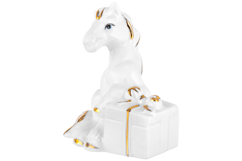 БЫЛО 466 руб! Фигурка декоративная 6,5*5*8 см "Лошадь" с подарком белая с золотом, фарфор