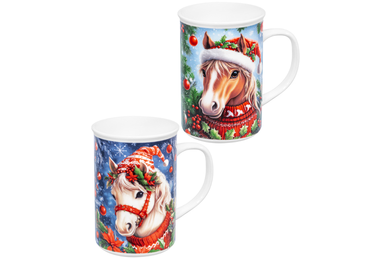 БЫЛО 655 руб! Набор 2 кружек 360 мл 11,5*7,5*11,5 см "Новогодняя лошадь", фарфор