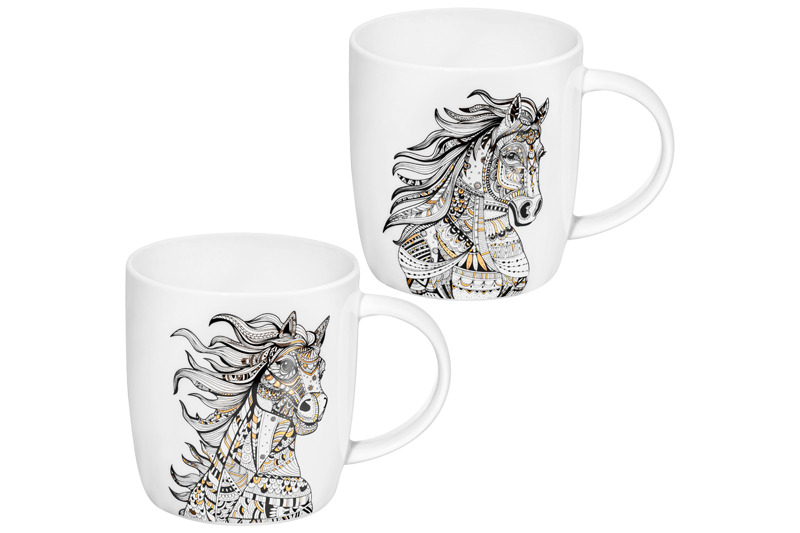 БЫЛО 756 руб! Набор 2 кружек 380 мл 12,5*9*9,3 см "Лошади" NEW BONE CHINA
