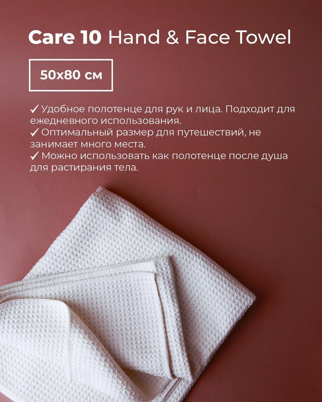 Вафельное полотенце для рук и лица имеет трэвел-формат, благодаря чему компактно помещается в любую сумку. Его удобно не только брать с собой в путешествия и командировки, но и использовать в ванной комнате, чтобы освежить и дополнить ваш интерьер. Вафельные полотенца серии Care разработаны специально для ценителей классики, ищущих стильное и универсальное решение для своего дома. Нейтральный молочный цвет впишется в любой интерьер, а вафельная фактура обеспечивает легкий микромассаж при каждом прикосновении. Полотенца серии Care выполнены из рассеченного микроволокна по технологии UpPoly. Благодаря его уникальным свойствам полотенца отличаются повышенной впитываемостью и быстро сохнут.