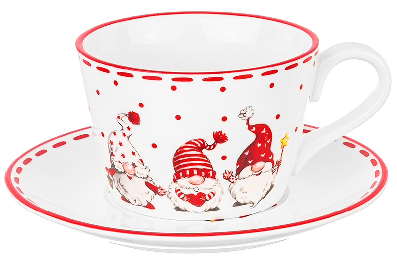 Чайная пара из серии «Весёлые гномики» от Elan Gallery предназначена для эстетичной сервировки вашего стола. Размер ёмкости – 13,5х10х7 см, объём – 360 мл. Размер блюдца – 16,5х16,5х1,5 см. Выполнена из высококачественного фарфора. Он не впитывает цвет напитков и легко отмывается, благодаря чему надолго сохраняет свою белизну. Поверхность изделий украшает яркий рисунок в виде забавных гномиков. Кофейная кружка поможет вам провести множество приятных завтраков с капучино и латте, а также уютные чайные вечера с конфетами, вафлями и другими десертами и сладостями. Подойдёт ценителям чая и кофе, которые любят пить из красивой и необычной посуды. Согрейтесь зимой любимым напитком: какао с маршмэллоу, ягодным чаем, горячим шоколадом или глинтвейном. Летом освежитесь домашним лимонадом или морсом. Используйте сервировочное блюдце как подставку для чашки, порадовав гостей изящной сервировкой. Положите на десертную тарелку пирожное, кусочек торта или домашнего пирога. Подойдёт не только для десертов, но и для закусок: сырной нарезки, сырокопчёной колбасы или свежих овощей и зелени. Фарфоровая посуда с изображением маленьких новогодних помощников привнесёт в любое помещение дух волшебства и праздника! Это оригинальный элемент вашего декора. Не рекомендуется применять абразивные моющие средства. Подходят для использования в посудомоечной машине и микроволновой печи. Поставляются в дизайнерской картонной коробке – благодаря ей вам не потребуется дополнительная подарочная упаковка. Изделие станет прекрасным сувениром на память и отличным подарком для друзей и близких. Серия «Весёлые гномики» от бренда Элан Галерея поможет вам погрузиться в атмосферу Нового года и Рождества и наполнит ваш дом зимним уютом!