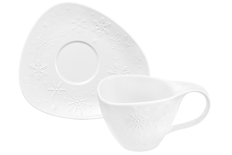 Чайная пара Elan Gallery "Снежинки" выполнена из белого фарфора, украшена изящным рельефным узором. В набор входят: чашка размером 14,5х10х8 см и объёмом 350 мл, блюдце 17х15х2 см. Блюдечко имеет оригинальную фигурную форму. Кружка подходит ценителям чая и кофе, которые любят пить из красивой посуды. Чайный инвентарь украсит ваш стол своим стильным дизайном как на праздник, так и в будни. Это отличный вариант для того, чтобы согреться горячим чаем зимой и освежиться прохладным лимонадом летом. Наслаждайтесь любыми кофейными напитками: эспрессо, капучино или латте. В отличие от керамики фарфор не впитывает цвет и запах напитков, легко отмывается и сохраняет свой привлекательный вид долгие годы. Используйте фарфоровую тарелку как подставку для кружечки, чтобы порадовать гостей изящной сервировкой. Положите на неё кусочек торта, домашнего пирога или пирожное. Тарелочка подойдёт не только для десерта, но и закусок: сырной нарезки, сырокопчёной колбасы или свежих овощей и зелени. Не рекомендуется применять абразивные моющие средства. Набор можно использовать в микроволновой печи и посудомоечной машине. Поставляется в красивой картонной коробке. Станет приятным подарком вашим близким на любой праздник. Благодаря стильной коробочке не понадобится подарочная упаковка. Чашка с десертной тарелочкой станут украшением вашей кухни или приятным сюрпризом для близких. В коллекции бренда Элан Галерея представлены товары для дома на любой вкус, в том числе красивая посуда для эстетичного чаепития.