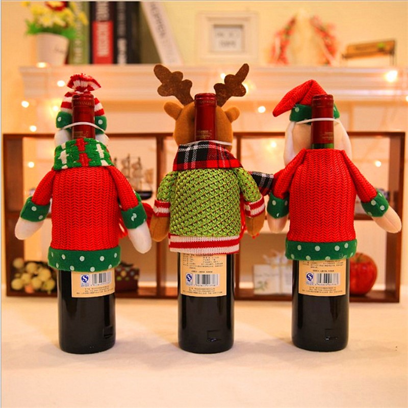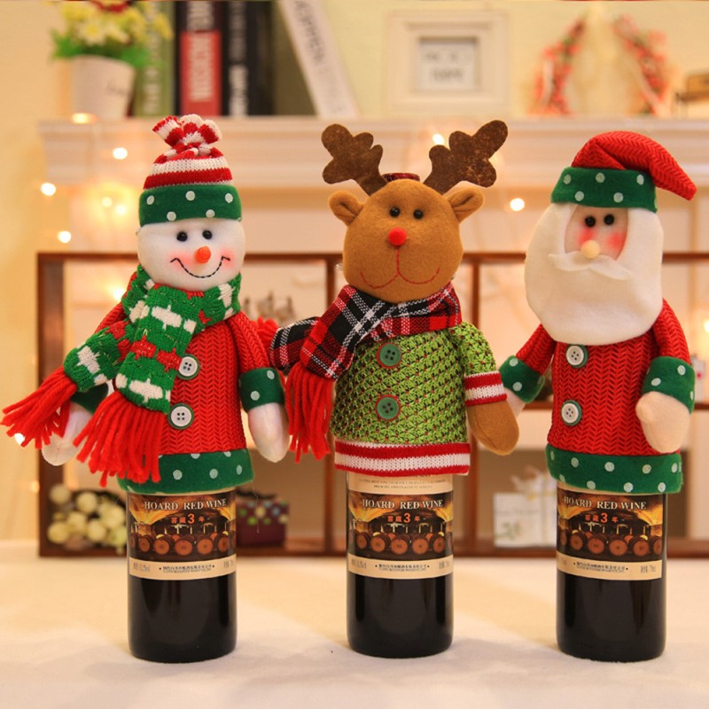 персонажа: Дед Мороз, снеговик и олень — оригинальные чехлы для бутылок.