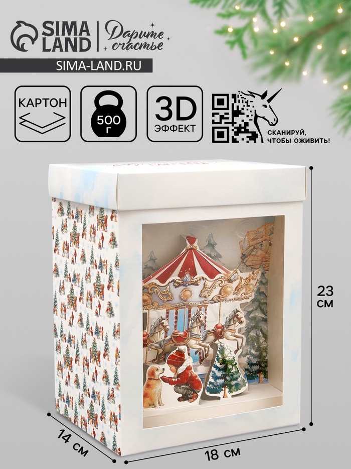 Коробка новогодняя складная с 3D эффектом «Лошадь 2026», карусель, 18×23×14 см