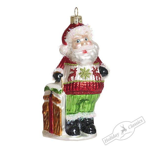 Дед Мороз-спортсмен с санками (стекло) 7х4,5х12,5 см