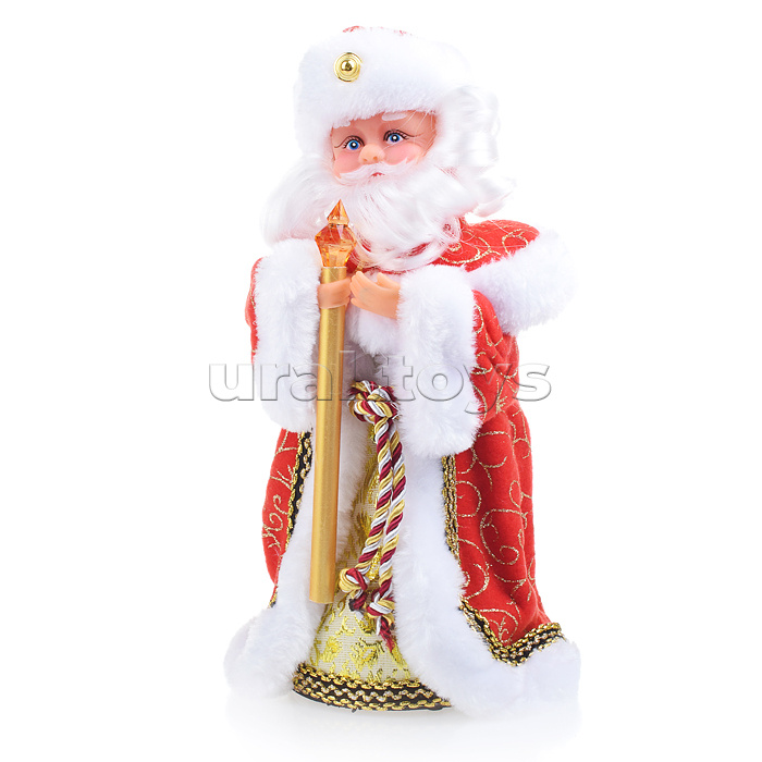 Дедушка Мороз с посохом в красной шубе, музыкальный 30см в пакете