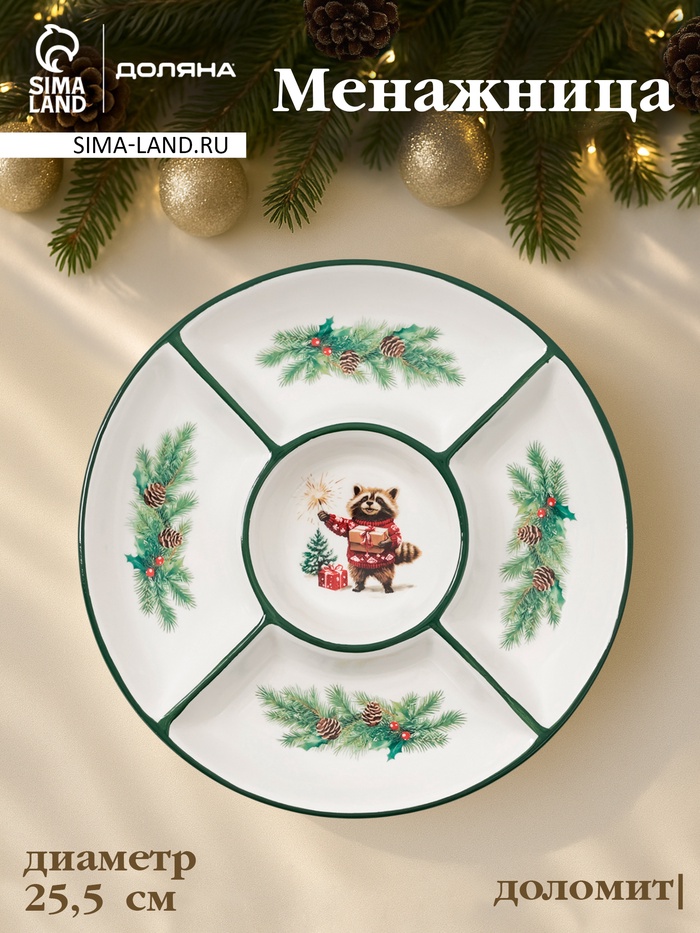 [Картинка122] Пятисекционная керамическая менажница «Новогодние животные» — идеальный выбор для праздничного стола. С этой изысканной белой посудой ваши угощения приобретут особую привлекательность.