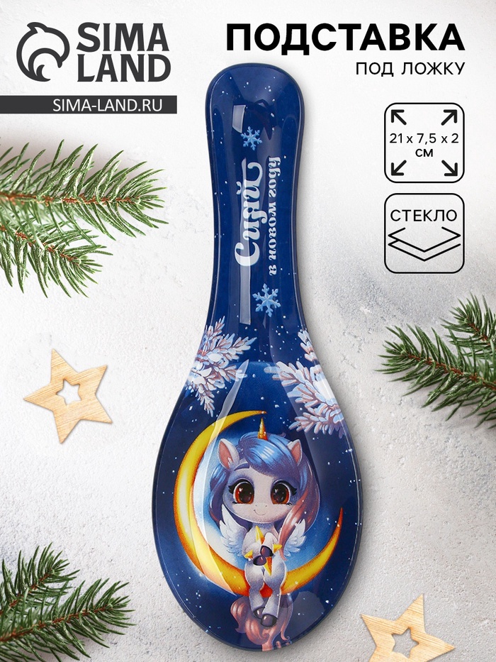 Новогодняя стеклянная подставка под ложку размером 21 х 7,5 х 2 см — отличный выбор для вашей кухни.