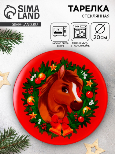 Новогодняя стеклянная тарелка диаметром 20 см — идеальный выбор для сервировки стола.