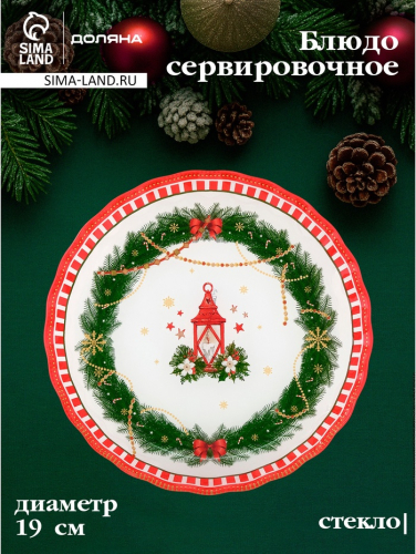 Новогодняя стеклянная тарелка диаметром 20 см — идеальный выбор для сервировки стола.