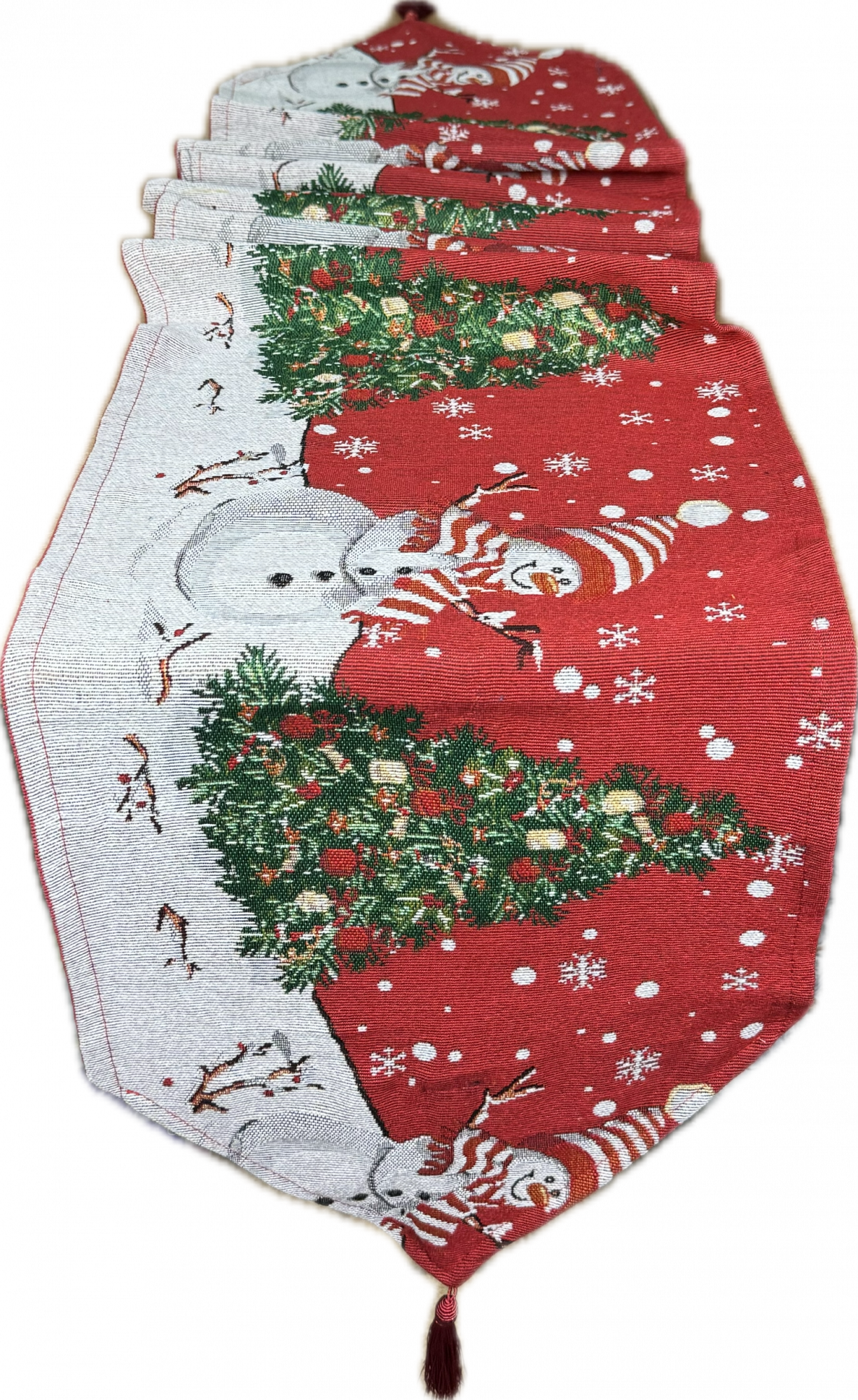 Дорожка гобеленовая на стол СНЕГОВИК С ЕЛКОЙ р-р 180х35