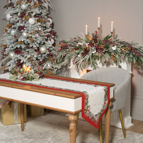 ДОРОЖКА "МОРОЗКО.СНЕГИРИ "45Х215СМ ,КРАСНЫЙ, 100% ХЛОПОК,ТВИЛ ПРОПИТКА