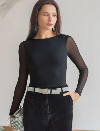 Дерзкий тренд этого сезона! Модель сочетает роскошный змеиный принт с соблазнительными полупрозрачными рукавами из тонкой сетки. Глубокий вырез-лодочка подчеркивает линию плеч, создавая элегантный и одновременно смелый образ. Идеальный выбор для стильных образов!
