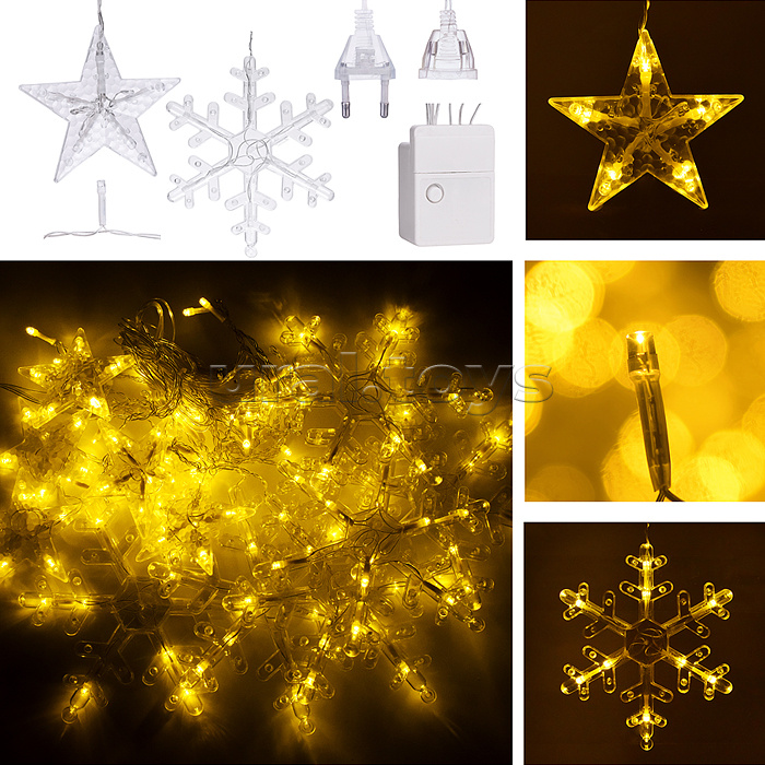 Электрогирлянда интерьерная "Звёздочки и снежинки" тёплый свет