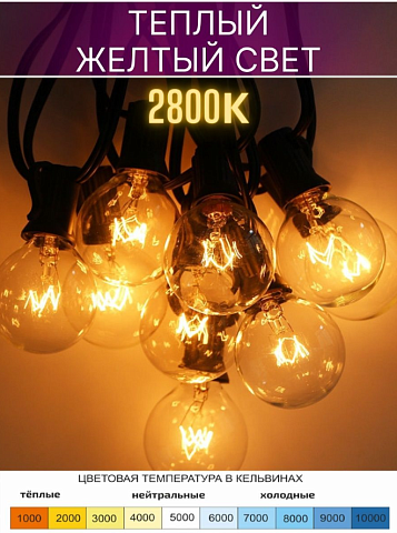 Гирлянда уличная садовая выполнена в ретро стиле с лампочками в виде шара, водонепроницаемая и морозостойкая IP44. Длина гирлянды 7,5 метров, длина провода от последней лампы до вилки 16 см, расстояние между лампами 30 см, патронов на 25 ламп.