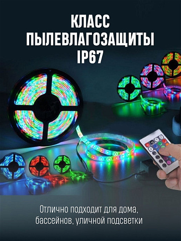 Данная лента влагостойкая, IP67, поэтому прекрасно подойдет для уличной подсветки, в местах взаимодействия с влагой, а так же в душевых и бассейнах. Яркость, динамичность и наличие различных цветных эффектов свечения делает эту ленту прекрасным вариантом для привлечения внимания к витрине, баннеру, окну магазина или кафе. Довольно интересных решений можно достичь в интерьерном оформлении.