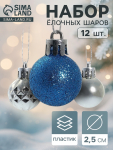 Ёлочные игрушки «Волна», шары новогодние, d=5 см, набор 6 шт., синий