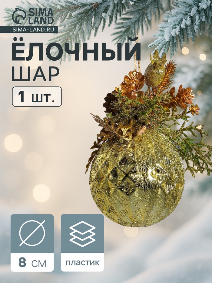 Ёлочный шар «Валенсия», новогодний, d=8 см, грани шишка ягоды, золото