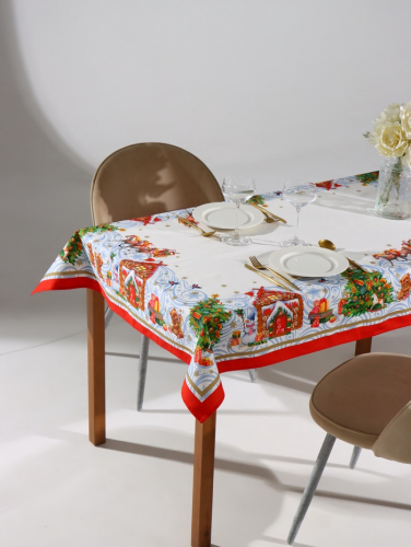 Столовый набор украсит праздничный интерьер. Изделия с эксклюзивным принтом сшиты из хлопкового полотна. Этот материал имеет плотную и упругую структуру, обладает высокой прочностью и на ура справляется с первостепенными задачами: