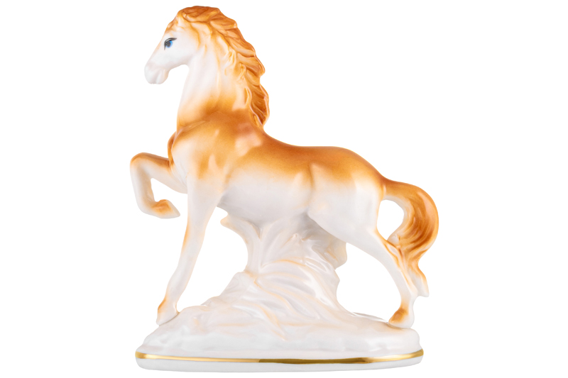 Фигурка декоративная 12*5,5*13,5 см "Лошадь" коричневая с золотом, фарфор