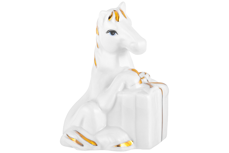 Фигурка декоративная 5,5*4,5*7 см "Лошадь" с подарком белая с золотом, фарфор