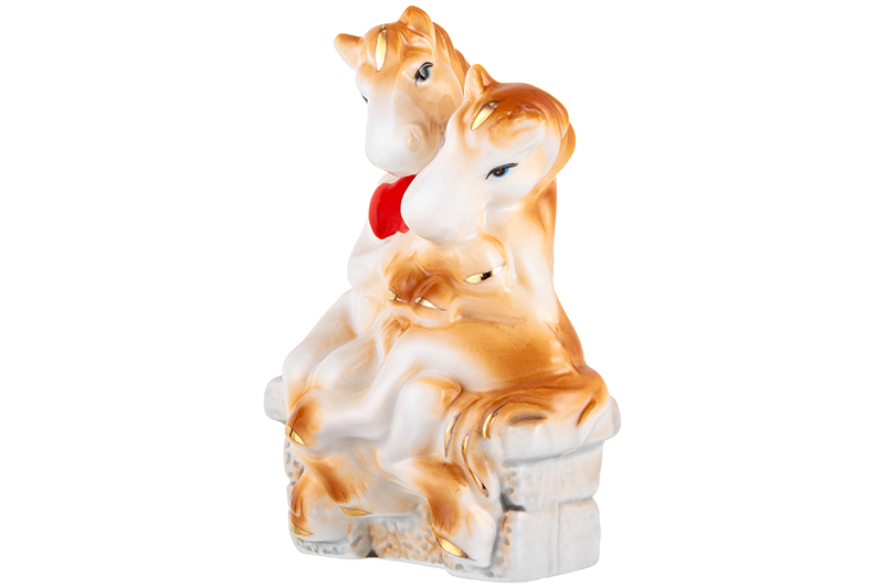 Фигурка декоративная 7*5*11 см "Лошади-влюбленная пара" коричневая с золотом, фарфор