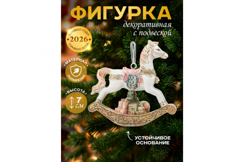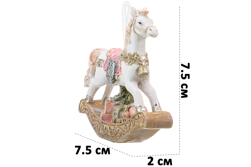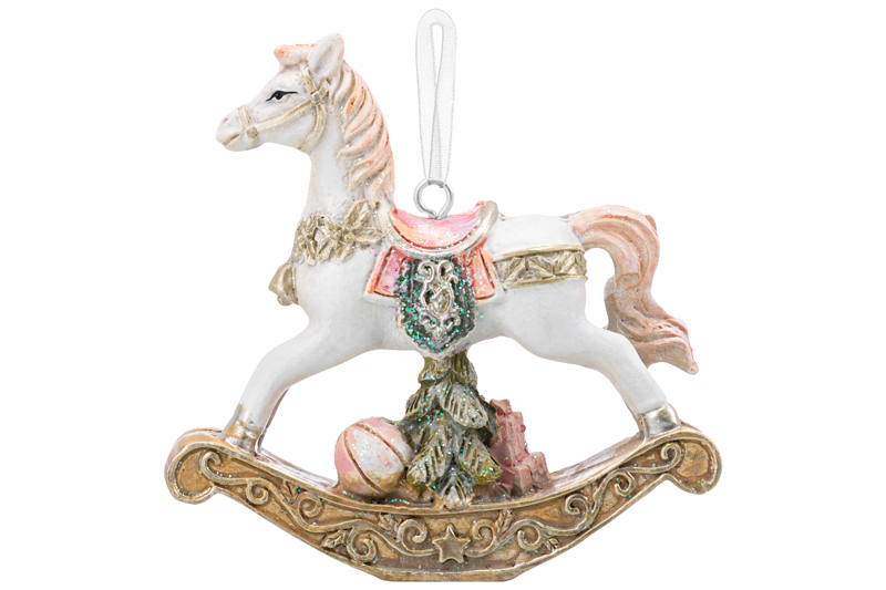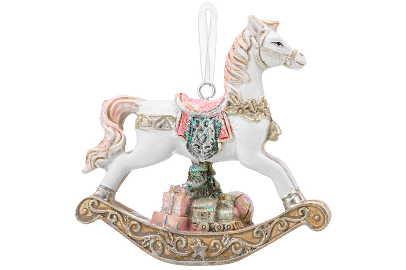 Фигурка декоративная 7,5*2*7,5 см "Лошадка-качалка с подарками", бело-розовая, полирезин