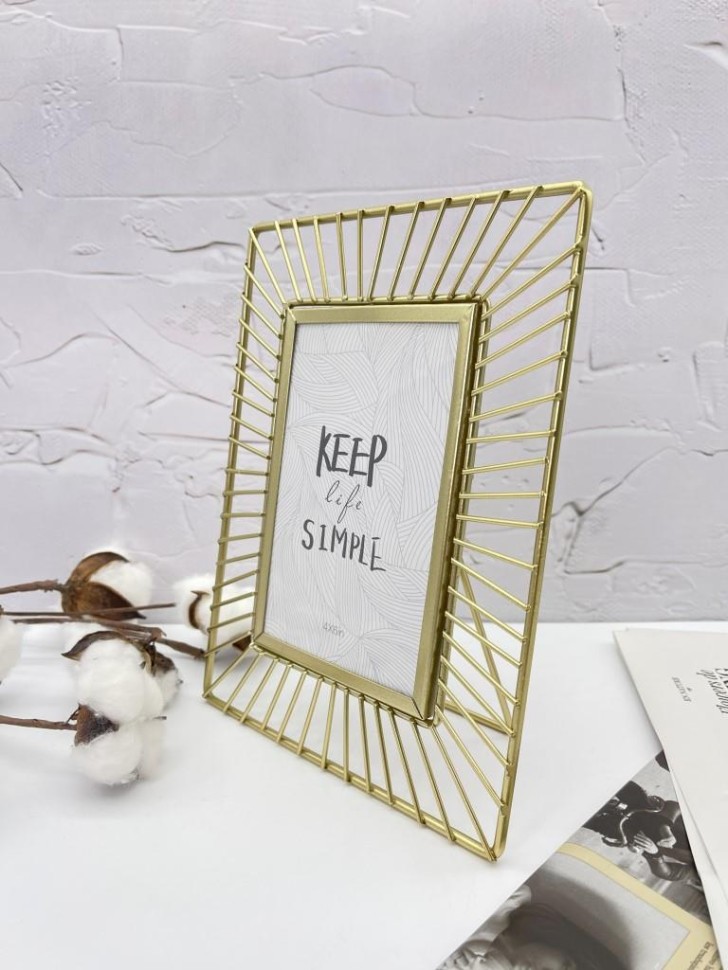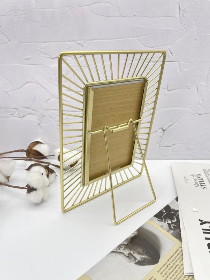 Фоторамка с золотистой проволочной окантовкой – стильный аксессуар, который станет изюминкой вашего интерьера. Металлическая рамка с эффектом "солнца" создает утонченный и изысканный вид, идеально подходящий для демонстрации ваших любимых фотографий или арт-постеров. Прекрасный выбор для оформления современной гостиной, спальни или офиса.