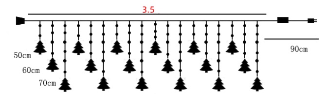 длина 3,5м, 96 светодиодов, 18 елочек,