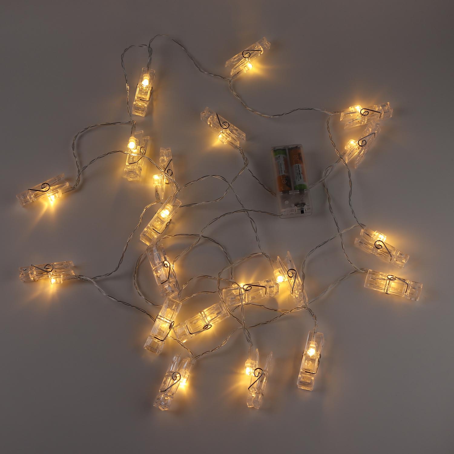 Гирлянда с прищепками 20 шт. 2,5 м тёпло-белая