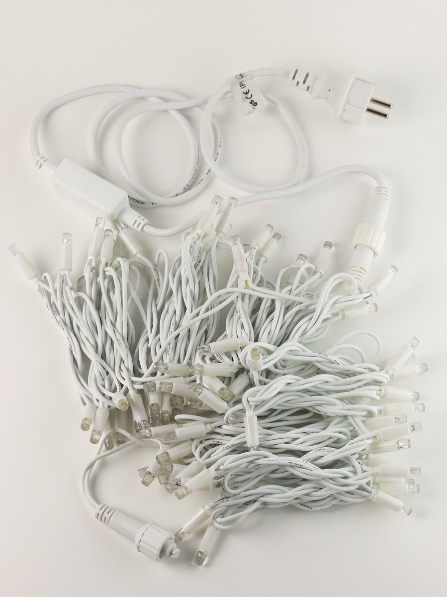Уличная гирлянда с LED лампами (светодиодами). Светодиоды потребляют малое количество электроэнергии, но при этом обладают большим коэффициентом свечения, чистым светом и прочностью. Во время работы светодиоды практически не нагреваются. Провод КАУЧУК. Внутри каждого провода находится медная проволока. Гирлянда ВЛАГОЗАЩИЩЕНА и МОРОЗОУСТОЙЧИВА, поэтому может применяться как в помещении, так и на улице. Гирлянда имеет коннектор, позволяющий соединять последовательно на один блок несколько штук.