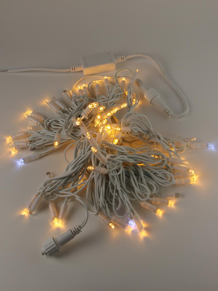 Гирлянда уличная мерцающая 80 led 10 м белый провод d=3,3 мм IP65 3.6 W 220 V тёпло-белая