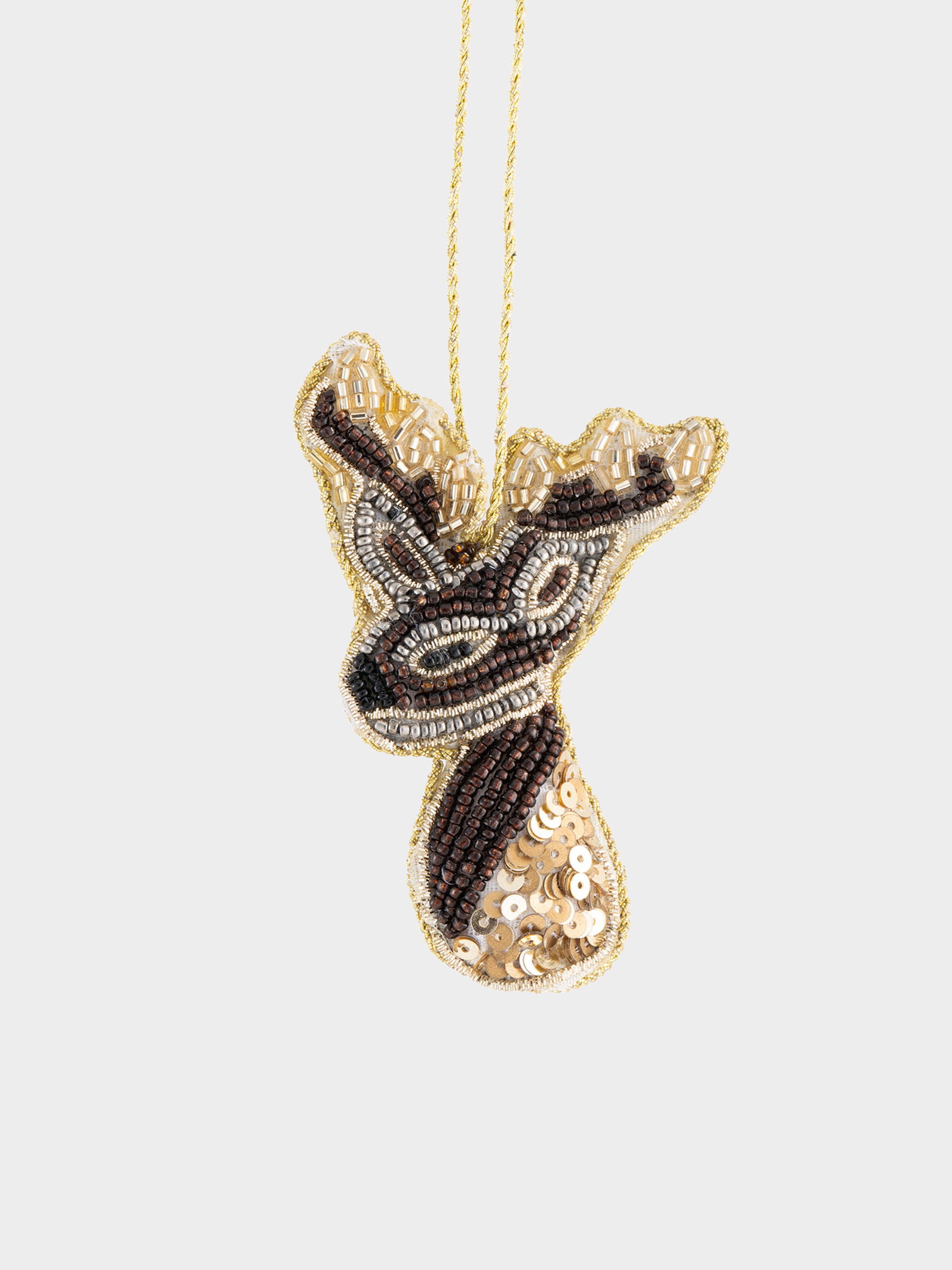 Игрушка елочная, 10 см, бисер/полифилл, бронзовая, Олень, New year