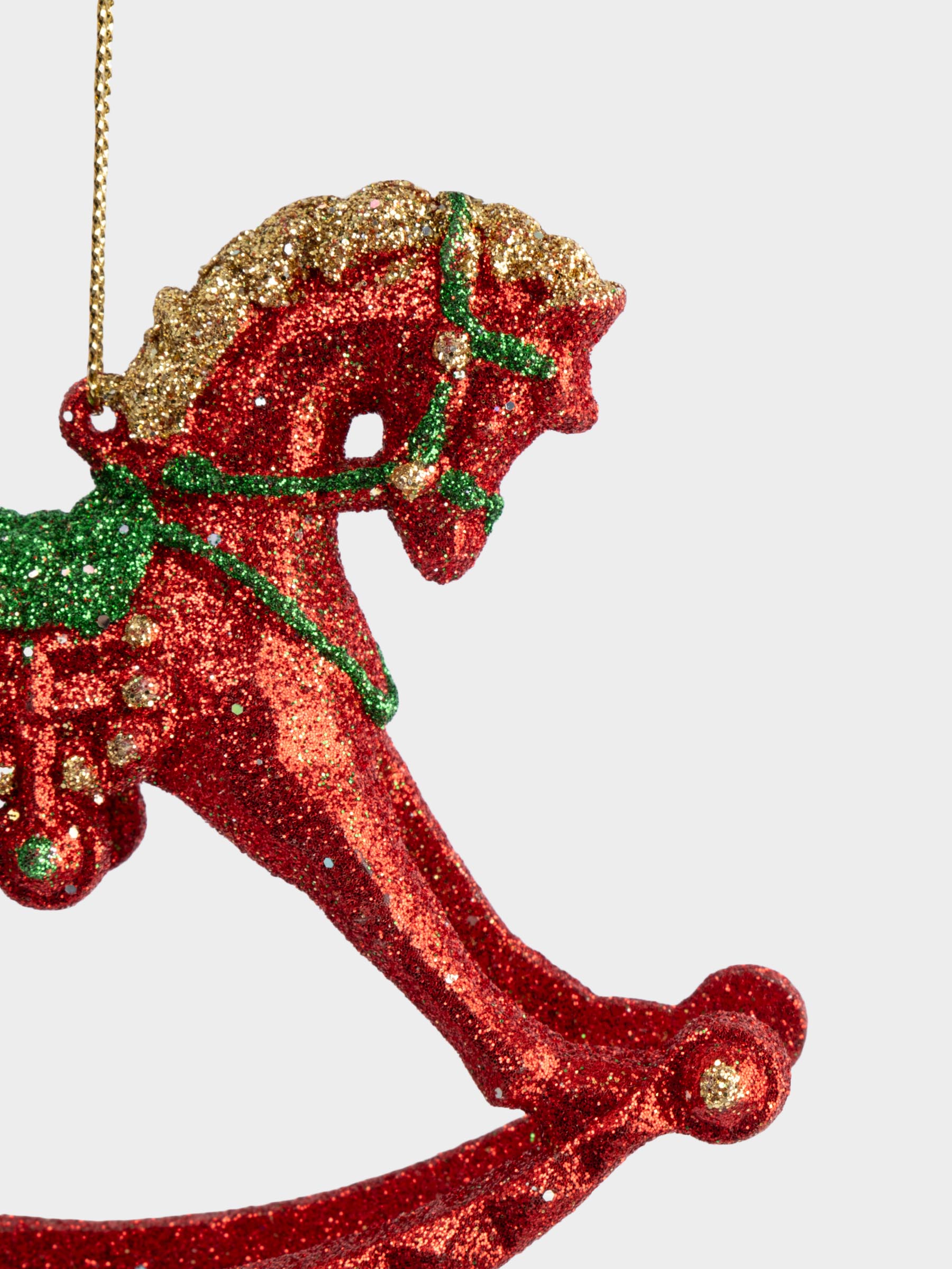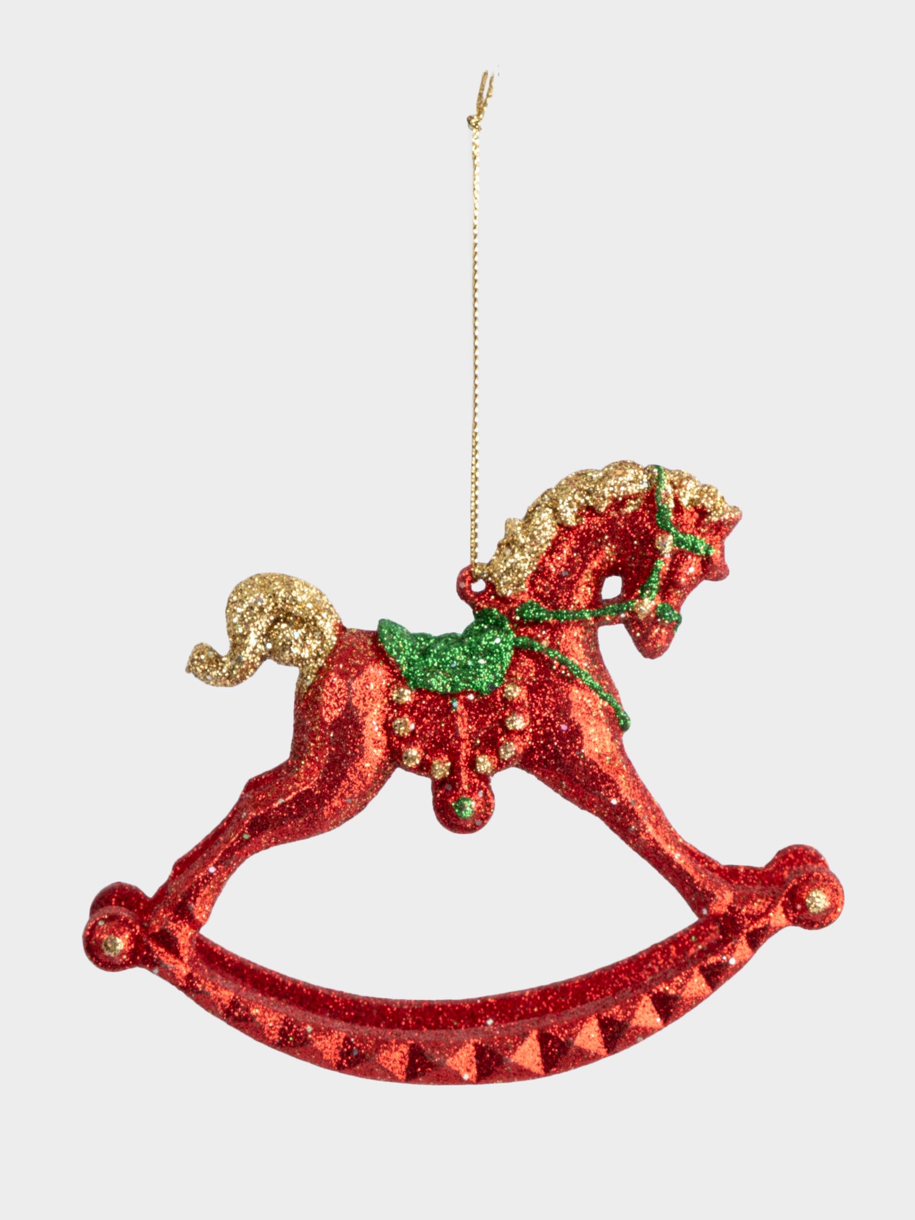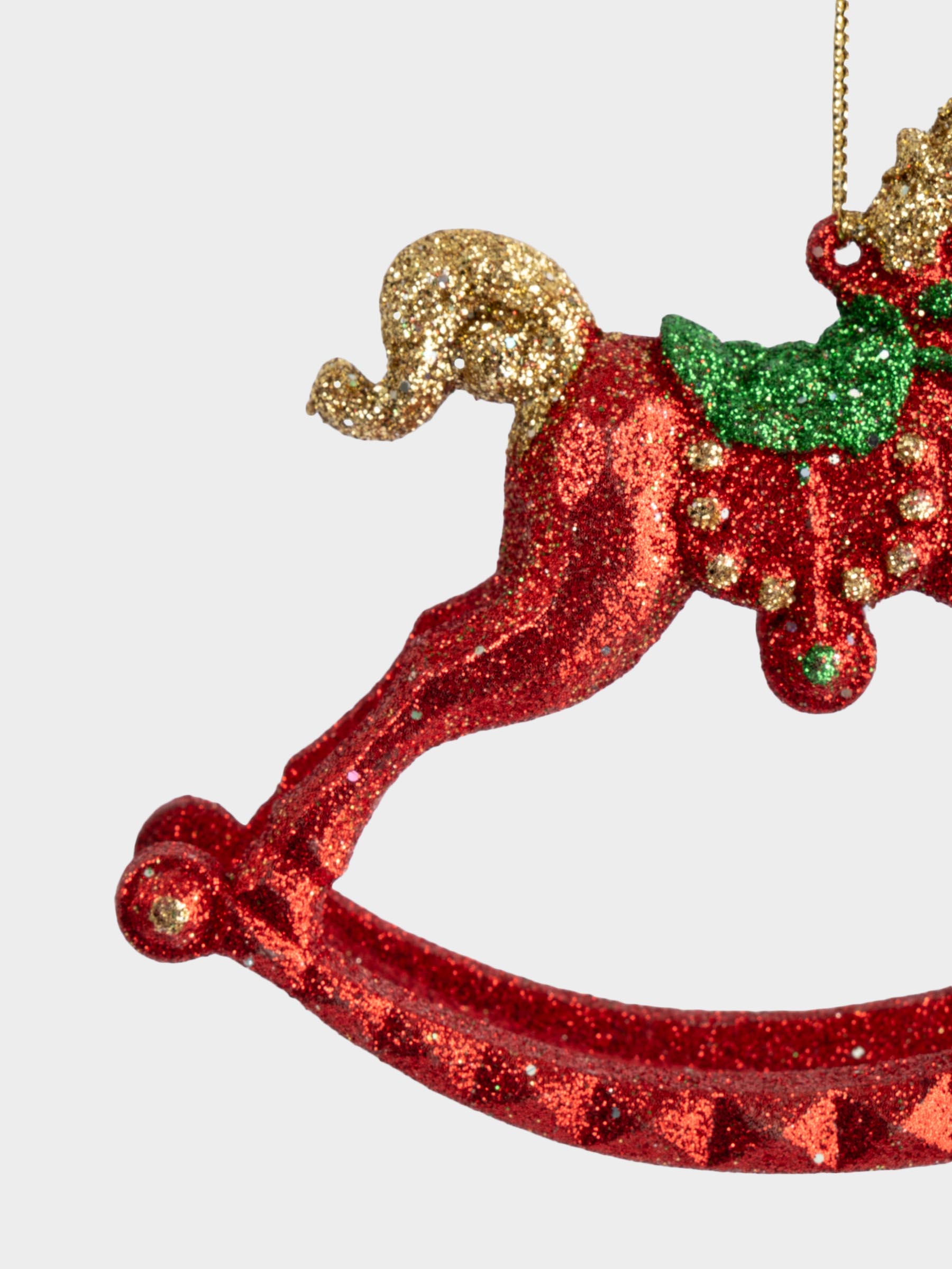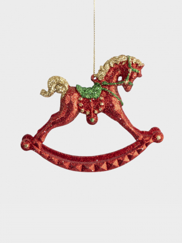 Игрушка елочная, 12х10 см, пластик, красная, Лошадка-качалка, New year