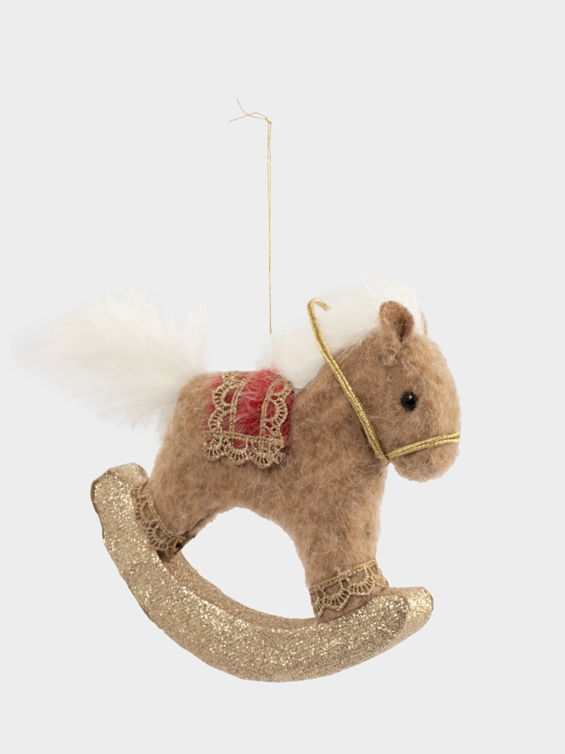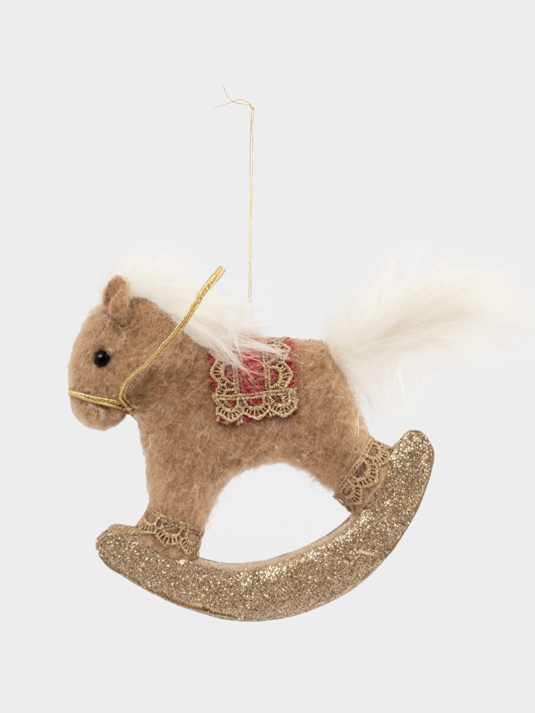 Игрушка елочная, 17 см, пенопласт/полиэстер, бежево-красная, Лошадка-качалка, New year